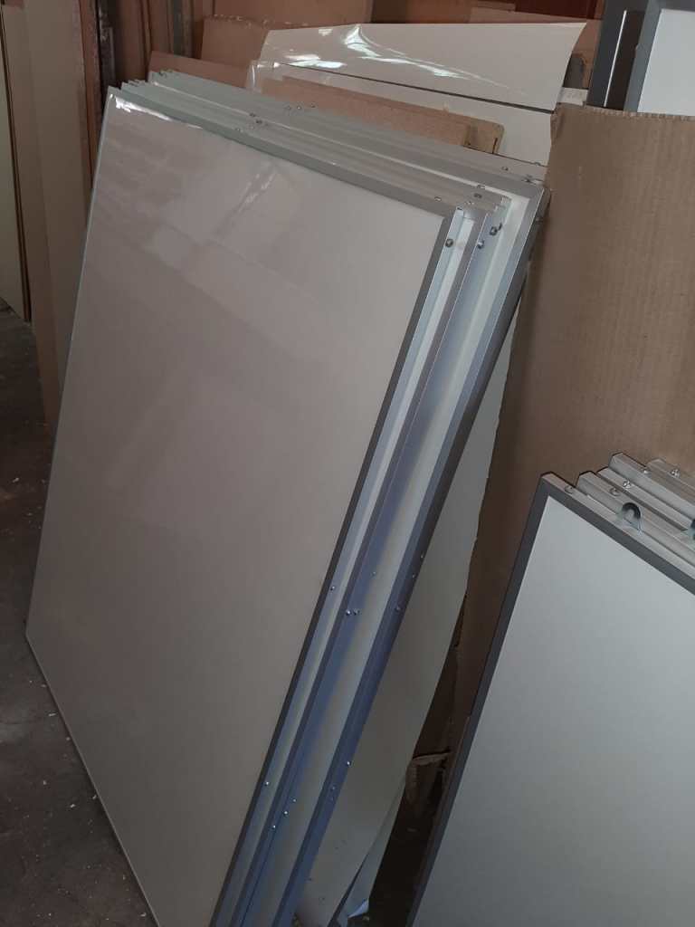 Imágenes de productos fabricados, pizarras blancas acrílicas, pizarras de corcho, pizarras mixtas, pizarras de tiza, pizarras tiza paloma, pizarras customizadas, vitrinas de información y franelógrafos.